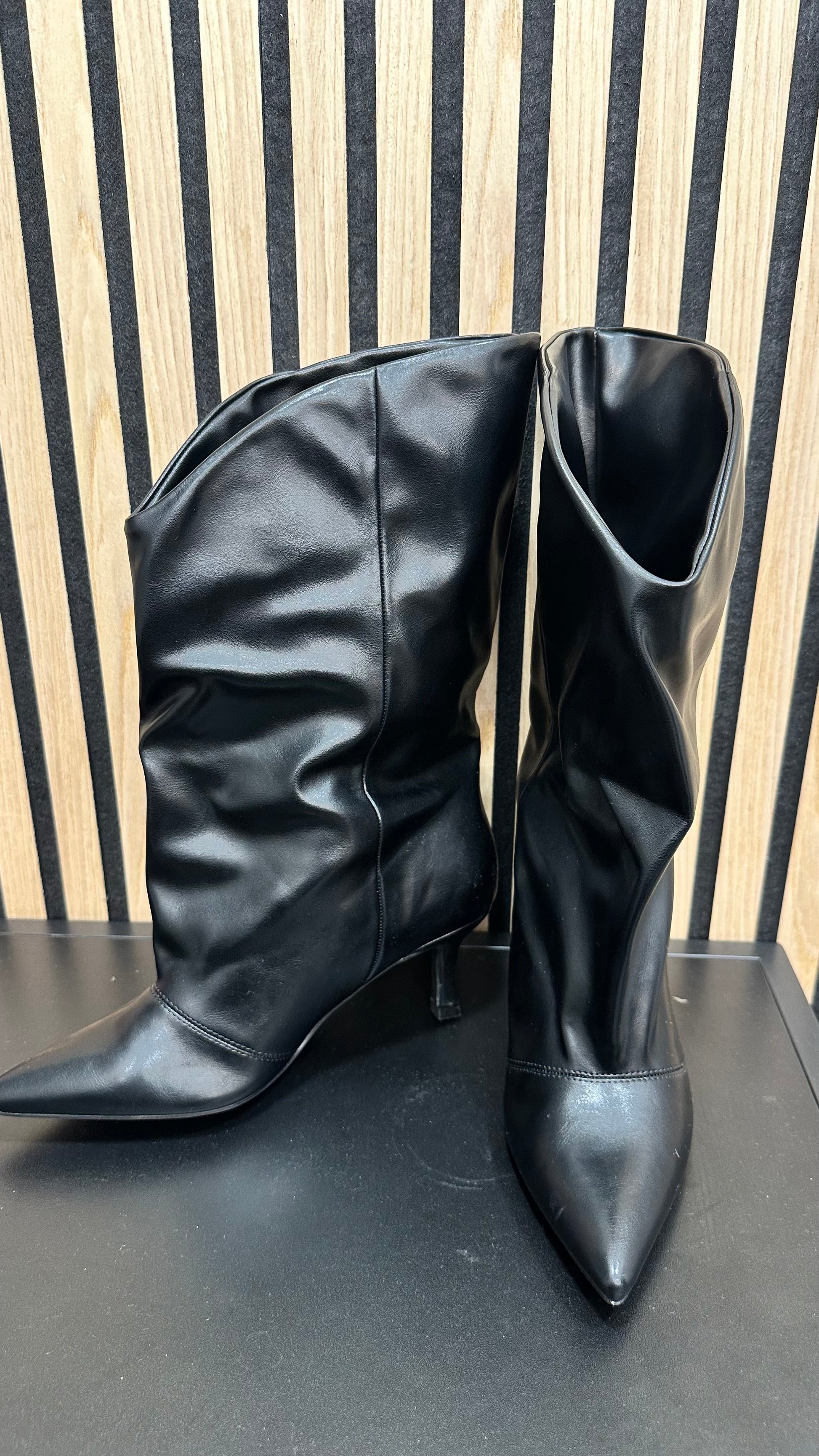 Stivale gambale largo con tacchetto a rocchetto