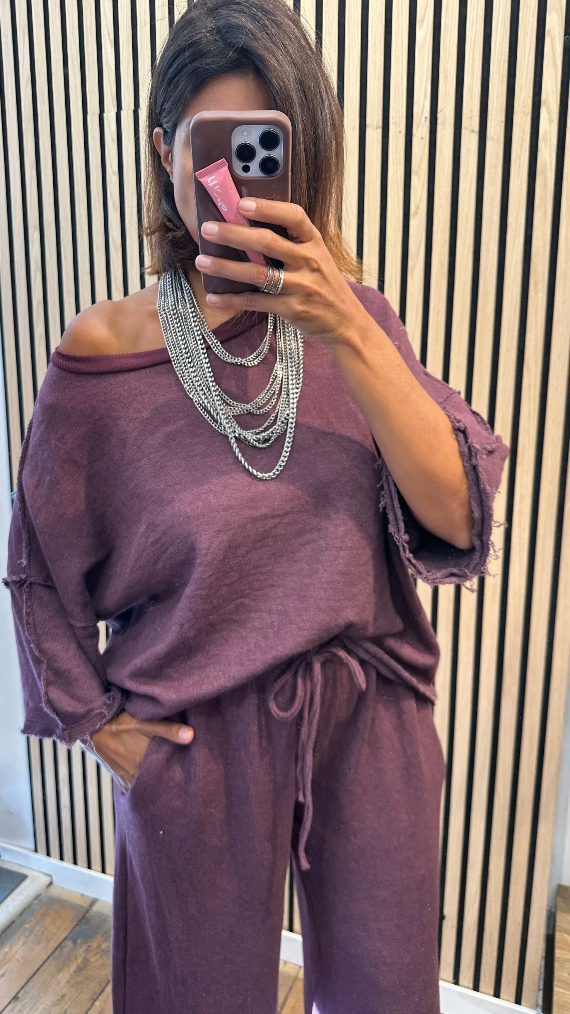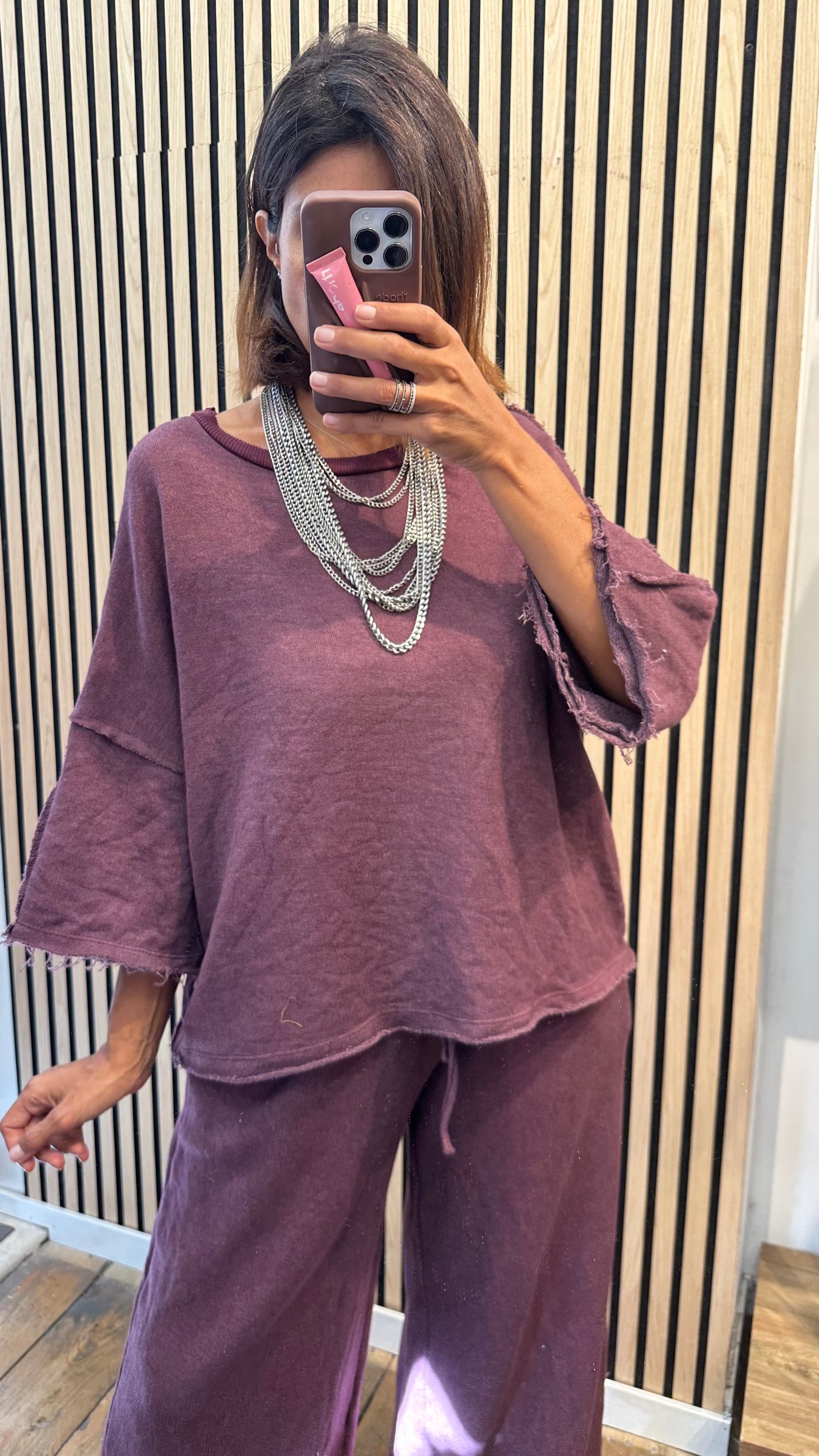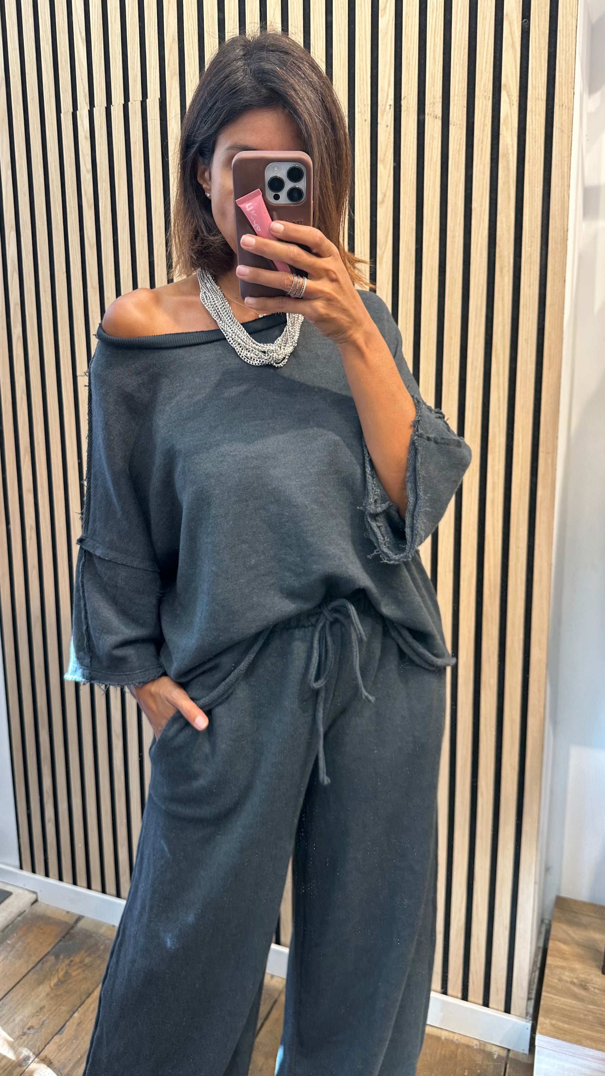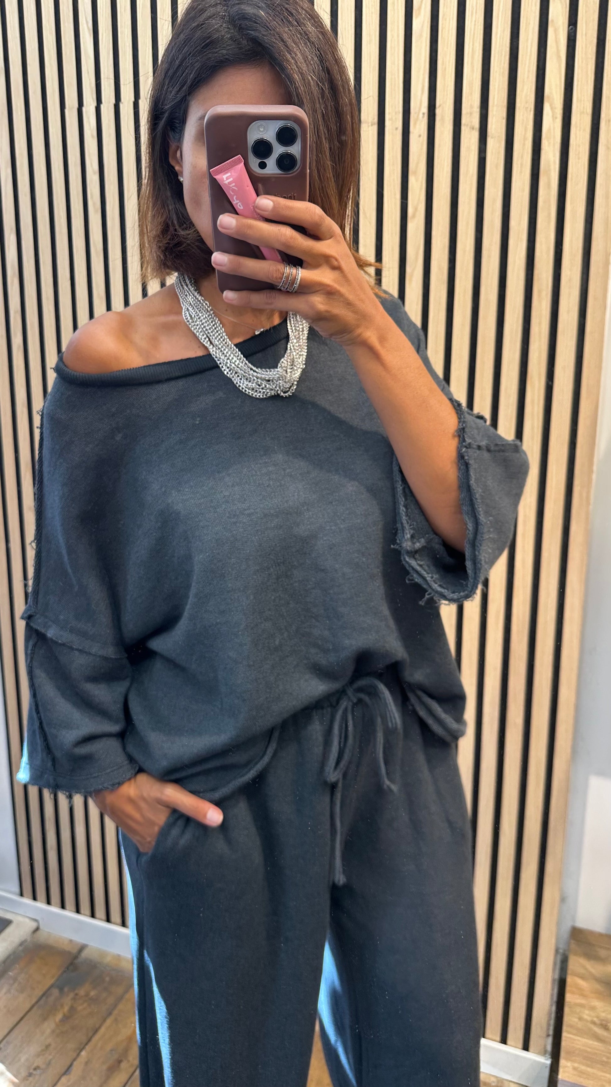 Felpa a scatoletta mélange con cucitura a contrasto . Può essere portata anche spostata sulla spalla