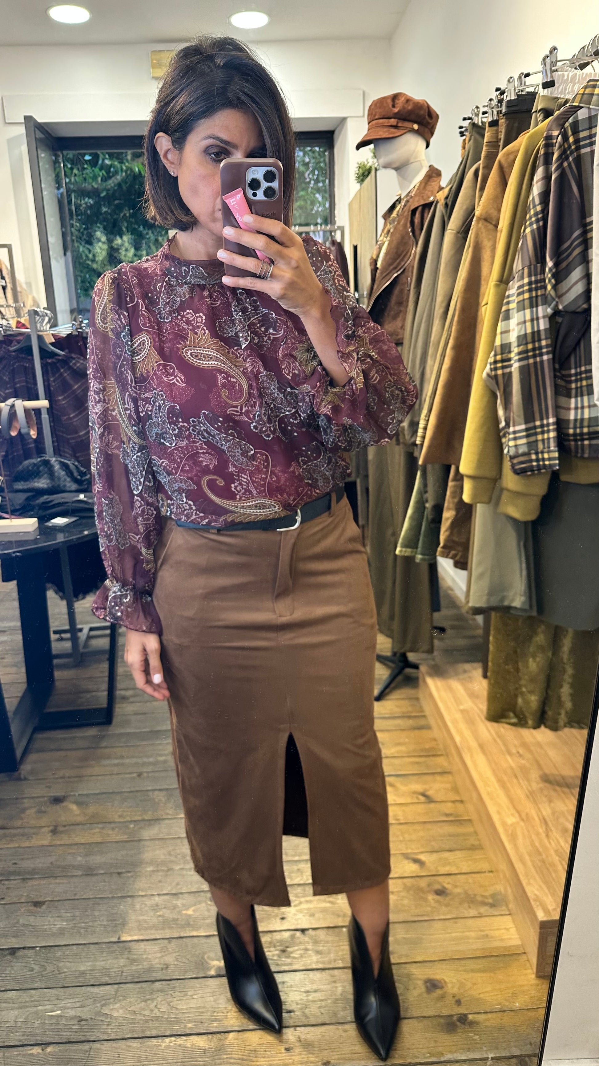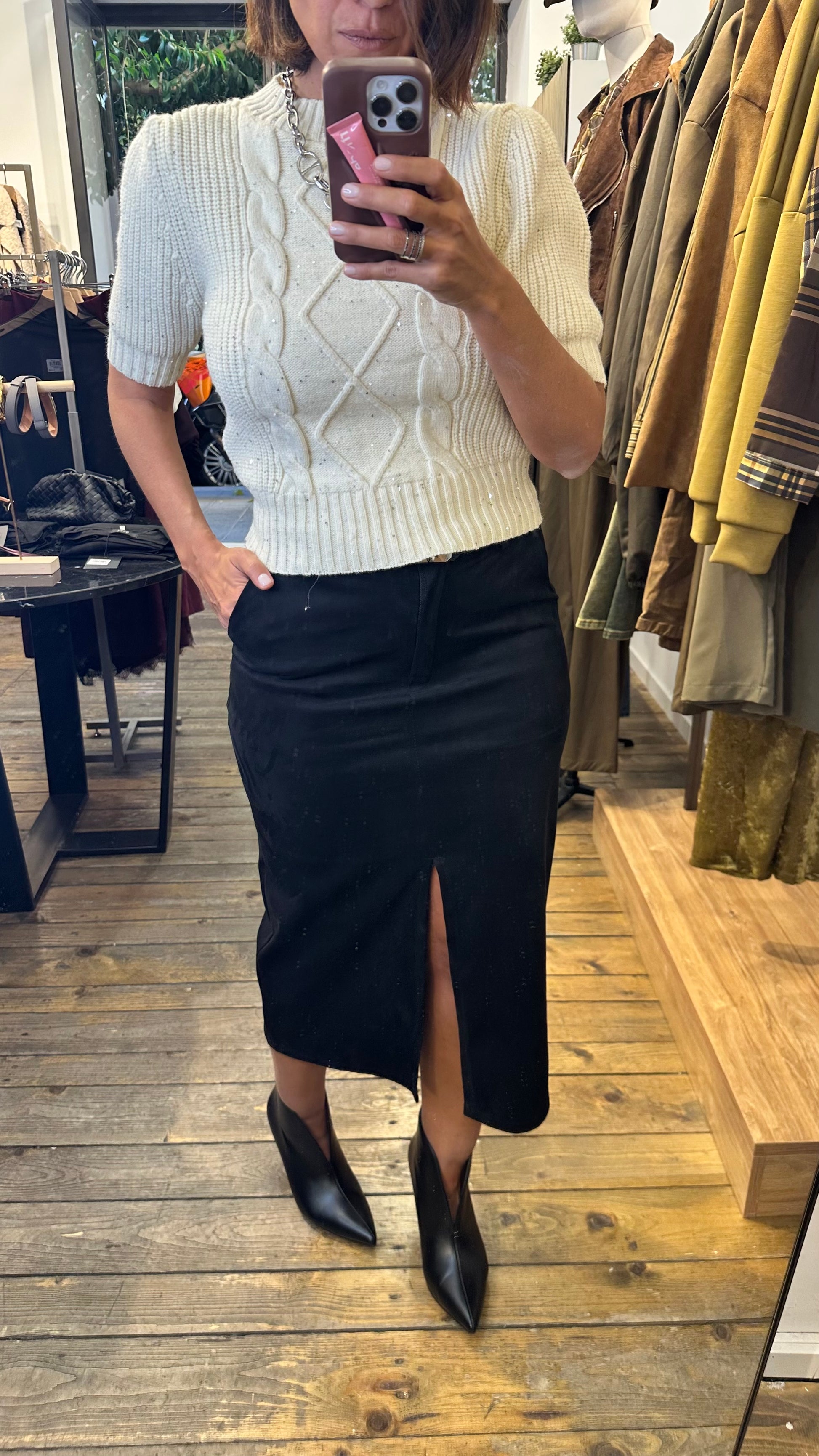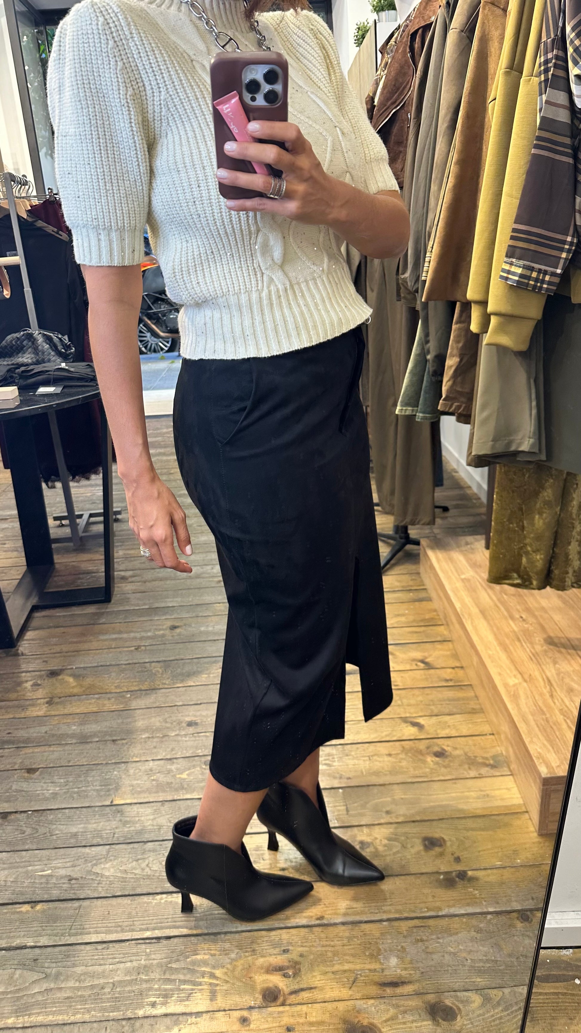 Gonna a tubino in eco daino con spacco davanti