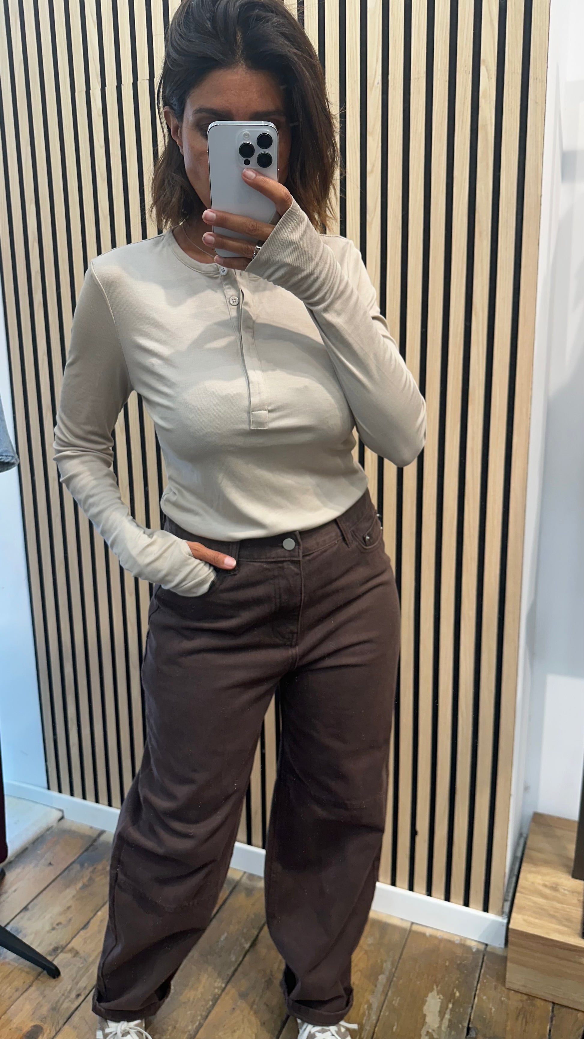 Jeans Barell con vita media alta e cucitura in evidenza sotto
