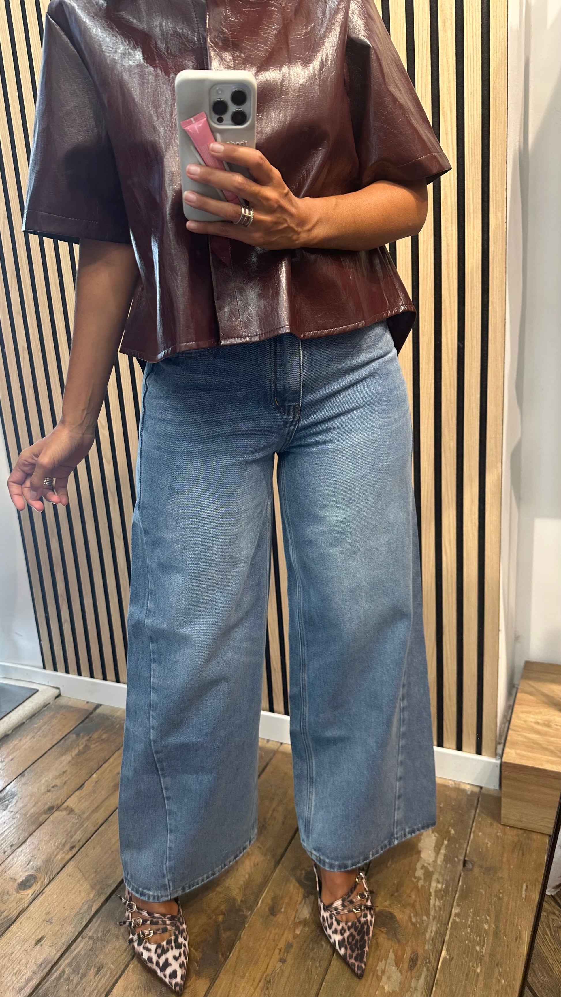 Jeans palazzo in tela ferma modello gamba 3/4 con cucitura in avanti