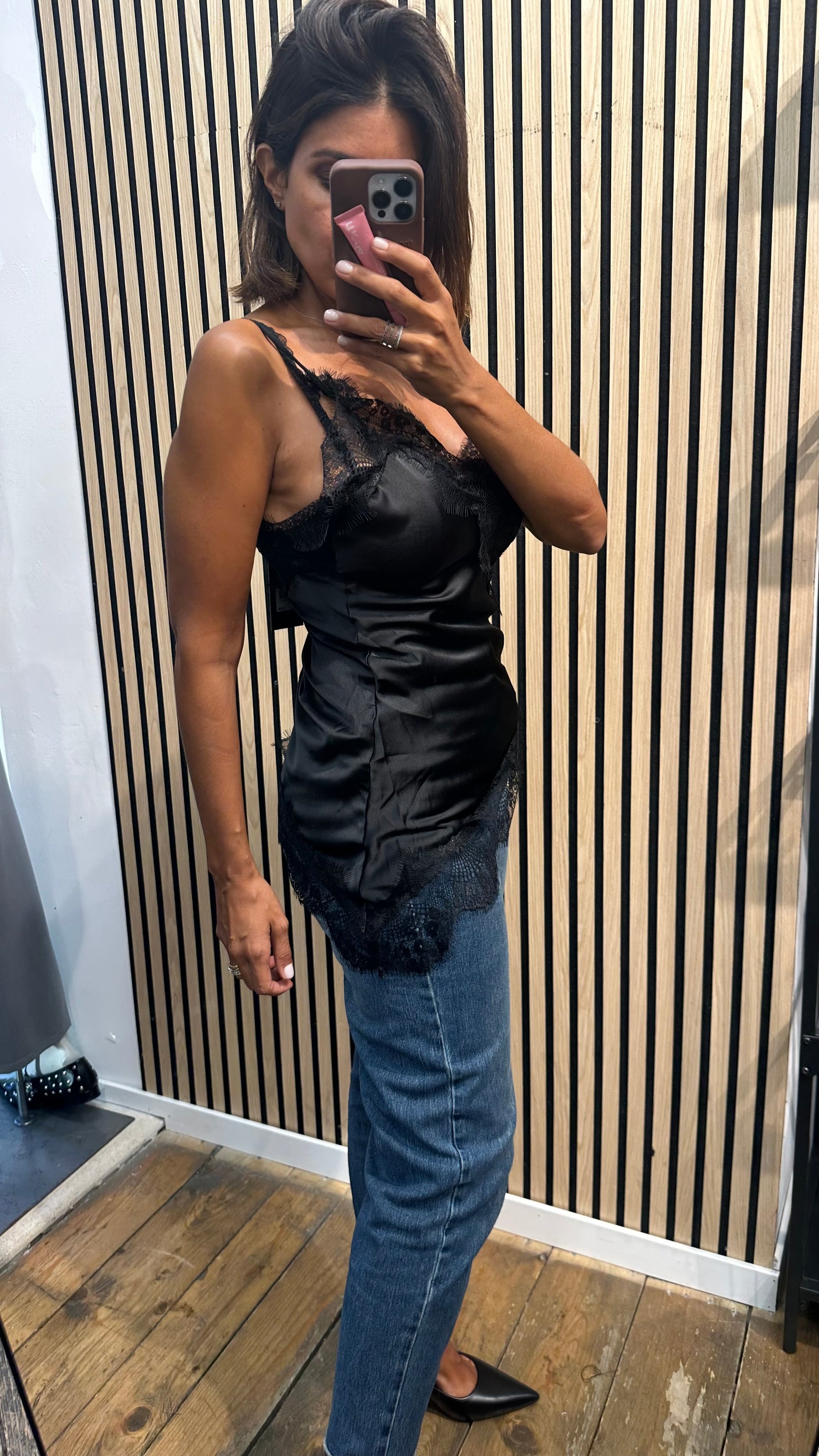 Top sbiego con inserti in pizzo